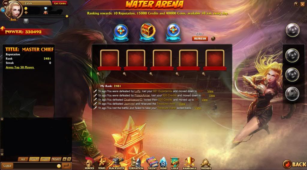 I was #20 in arena, then got knocked down to #2481 with one fight somehow, and now I cannot do anything in arena as far as fighting. Here are screenshots.